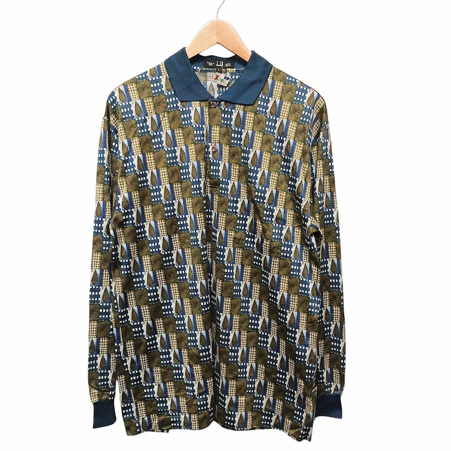 - 未使用品 デッドストック dunhill ダンヒル 長袖ポロシャツ 総柄 古着 OLD サイズ LL