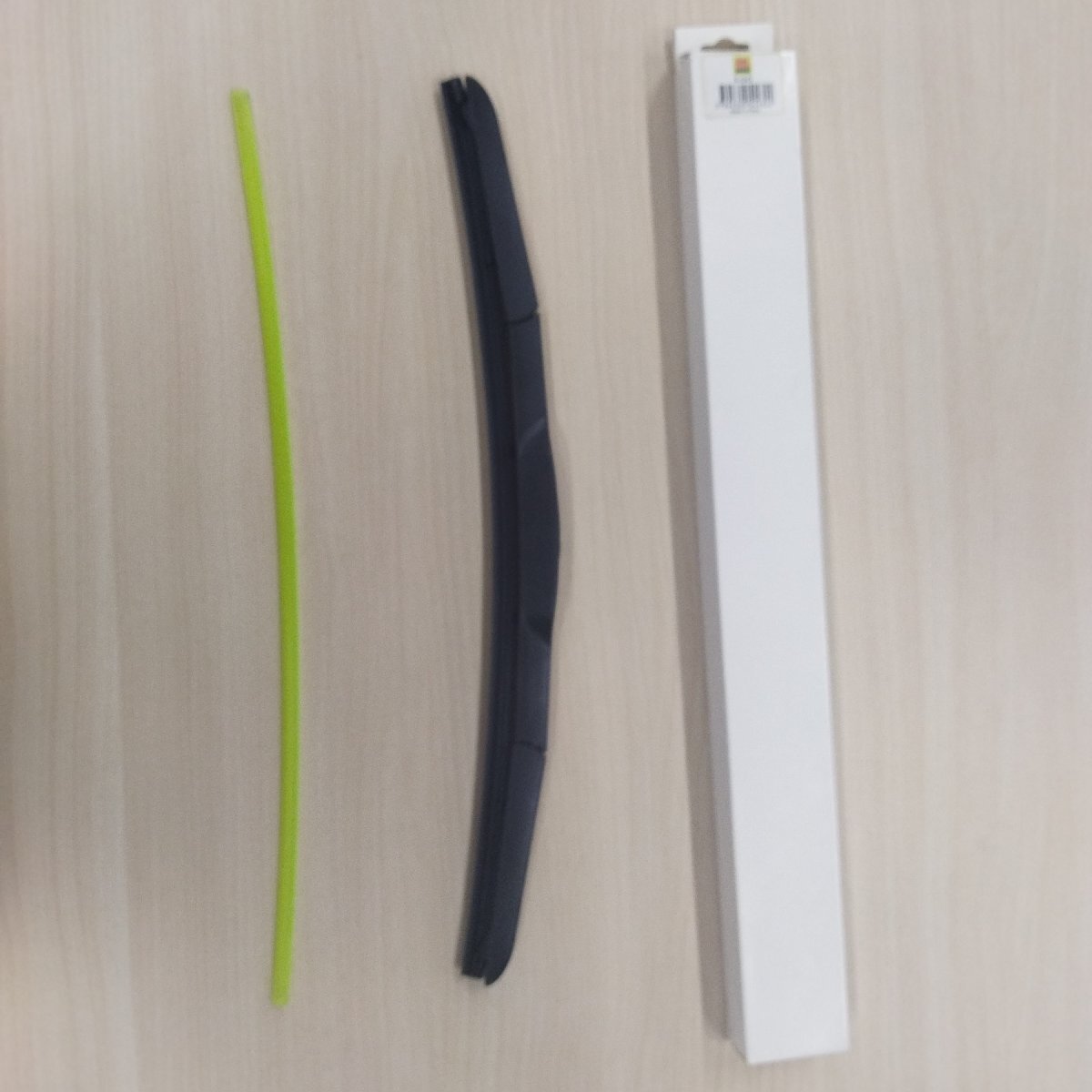 ゴムカバー(黄色の樹脂)が付いた、しっかりと梱包されたデザインワイパーです。