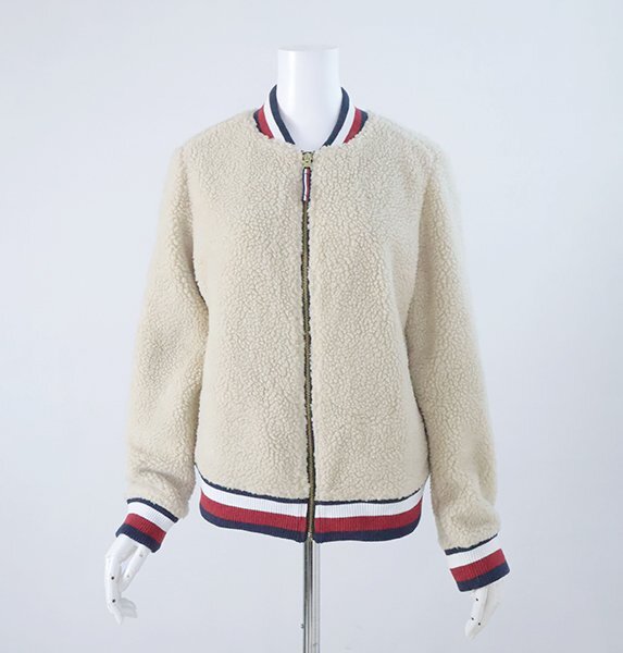 - TOMMY HILFIGER ◆ ボアフリース スタジアムジャンパー (ベージュ M) ファー ジャケット ブルゾン スタジャン トミーヒルフィガー ◆MU12