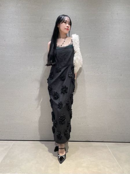 > 定価27,940円 新品タグ付き LILY BROWN リリーブラウン フラワーエンブロイダリーセットキャミドレス 黒