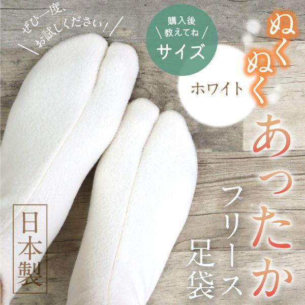 - 【あったか フリース足袋】【ホワイト】 LLサイズ 24.5cm~25.0cm 防寒 靴下温かい ストレッチ インナー足袋 和装小物 男女兼用