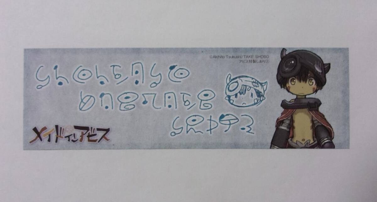- 【奈落文字メッセージ入り しおり】【アビス特製しおり】 メイドインアビス 「レグ」 コミックス2巻特典 つくしあきひと/竹書房