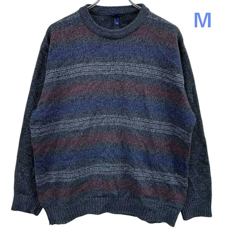 - ヴィンテージ メンズセーター ニット 灰色 M ボーダー ウール混【948