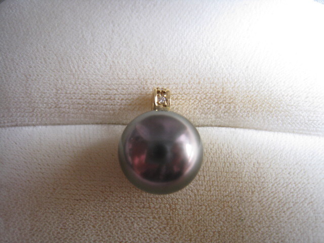 - [SAMU]極品!!照り抜群 天然南洋黒蝶真珠12.1mm ダイヤモンド0.03ct k18金ペンダント