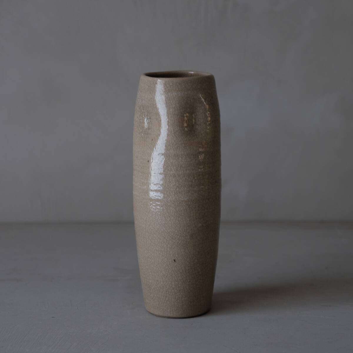- 03506 ヘコミのある花器 / 花瓶 陶器 鉢 生花 フラワーベース ヴィンテージ レトロ