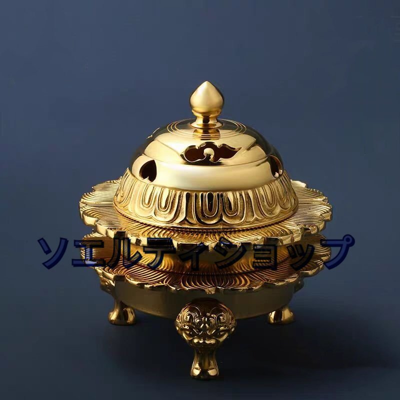 - 「密教法具 寺院仏具」真言宗 蓮華型法具 火舎香炉 仏具 仏教美術 筋彫り 真鍮製 磨き仕上げ 高さ12.7 cm