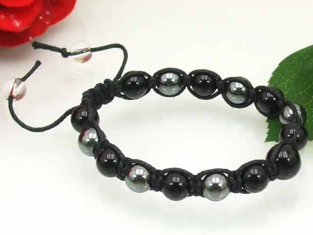 > ★☆★オニキス&ヘマタイト 編みこみブレスレット♪ 健康運up! 男女ともに人気の8ミリ おまけ付き 送料無料(a_r)b