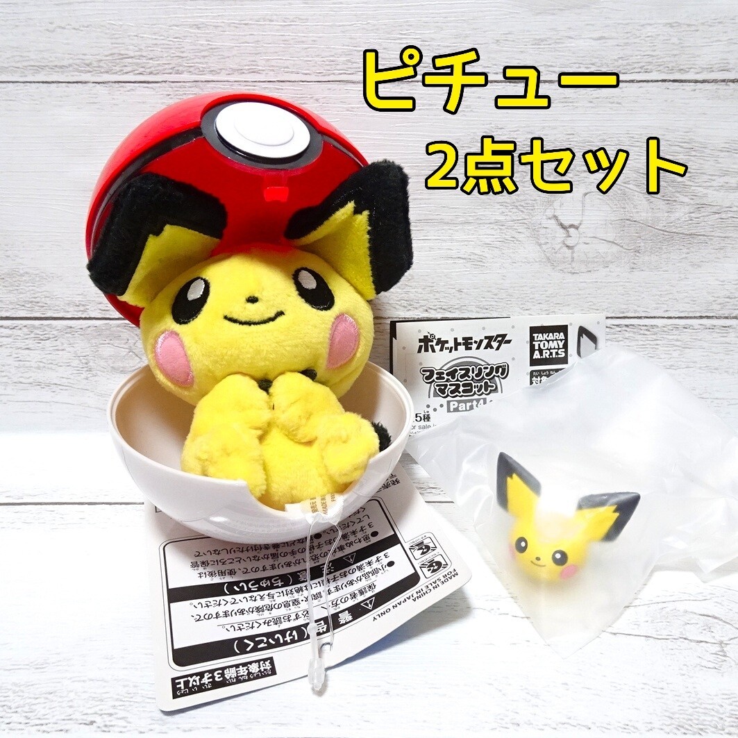 - 2222 送料無料 新品2点セット ポケモン ピチュー プチぬいぐるみ IN モンスターボールケース vol.2 & フェイスリングマスコット Part4