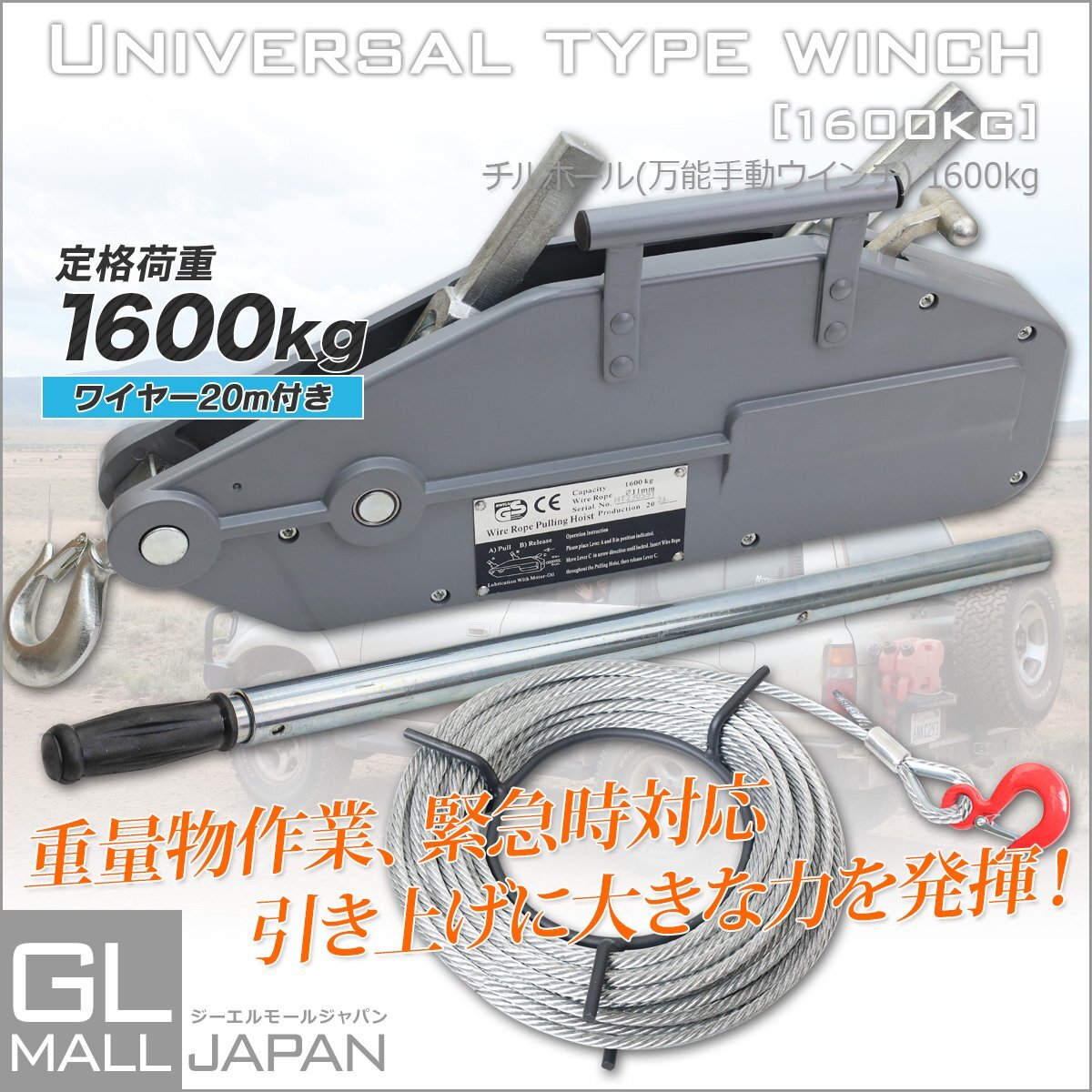 - 高品質CEマークGS規格チルホール 1.6t ハンドウインチ 万能手動ウインチ レバーホイスト 手動式 軽量 ワイヤー付 農機 機械移動 伐採