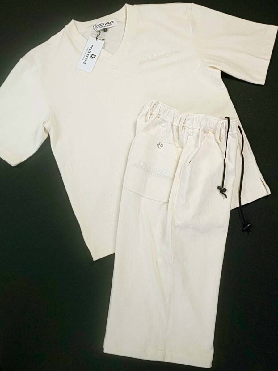 > DOUX DOUCE デュークスデューチェ 新品 SALE!! 50%OFF 半額 送料無料 半袖 ショートパンツ 上下セット L ゆったり目 ストレッチ 752701S-05