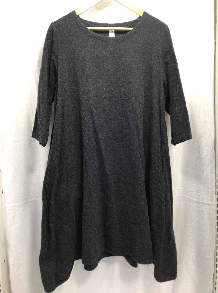 - SO エスオー ワンピース 七分袖 グレー コットン G10