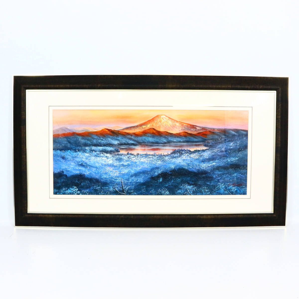 - 【真作保証】 流月真一 1月忍野の赤富士 油彩 風景画 油絵 絵画 美術品 紅葉