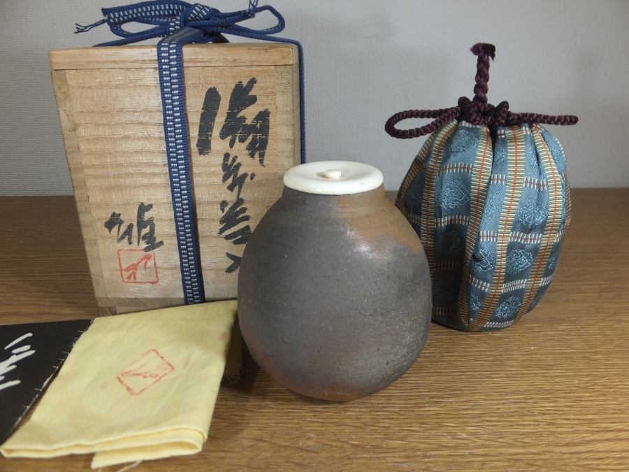 > ◎【真作保証】 藤原雄 自作 備前茶入 人間国宝 重要無形文化財 日本工芸会理事 コレクター放出品 (藤原啓 金重陶陽) 茶道具 岡山県