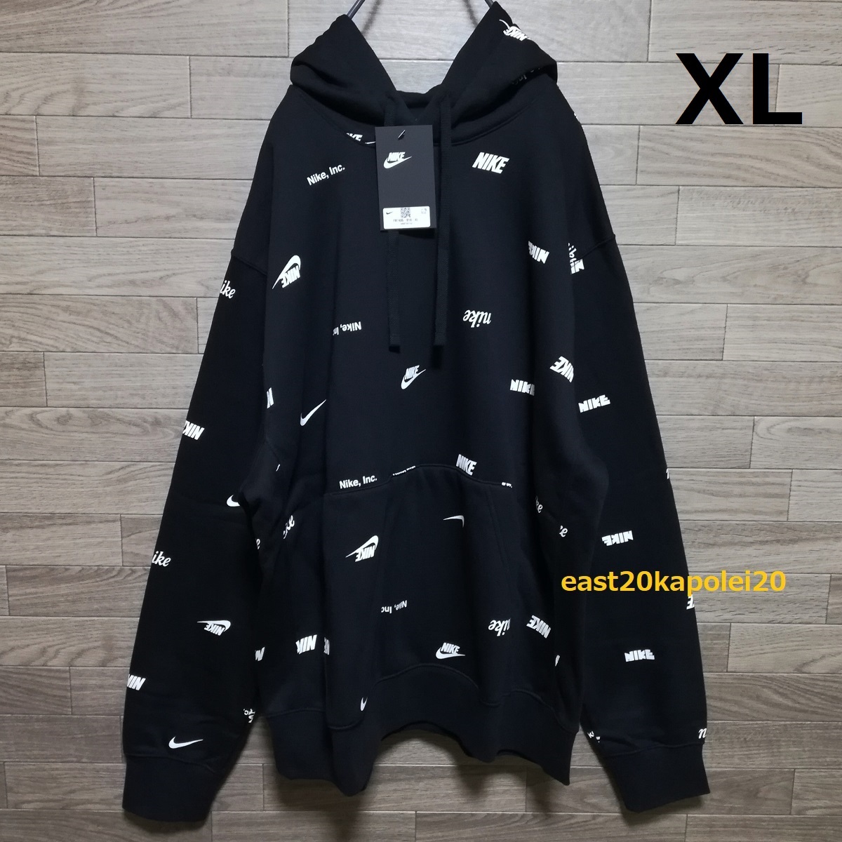 > XL 新品 NIKE ナイキ クラブ Futura フューチュラ スウッシュ ゴツナイキ スウェット フリース フーディー パーカー 黒 未使用 送料無料