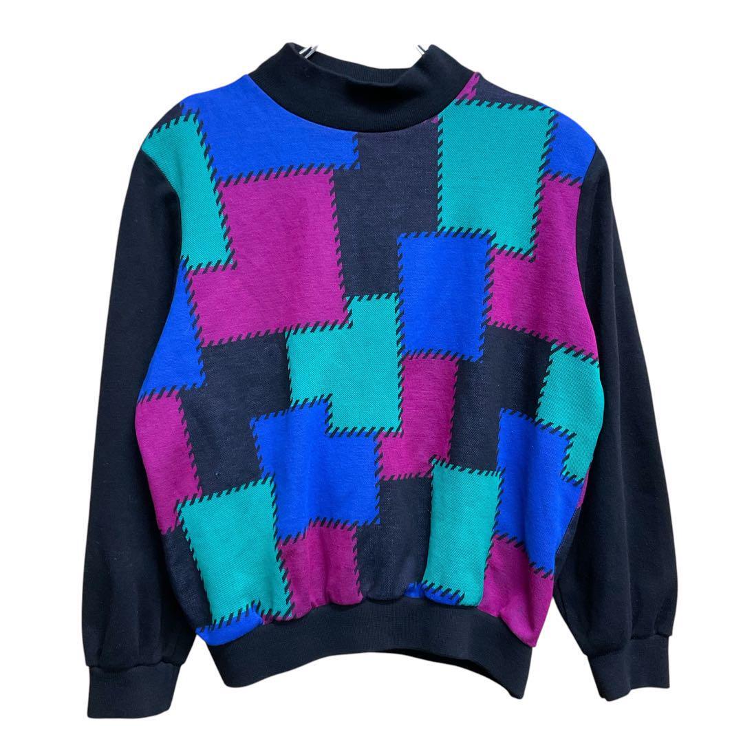- ヴィンテージ レディースニット 黒×赤×緑×青 L レトロモダン【1237】