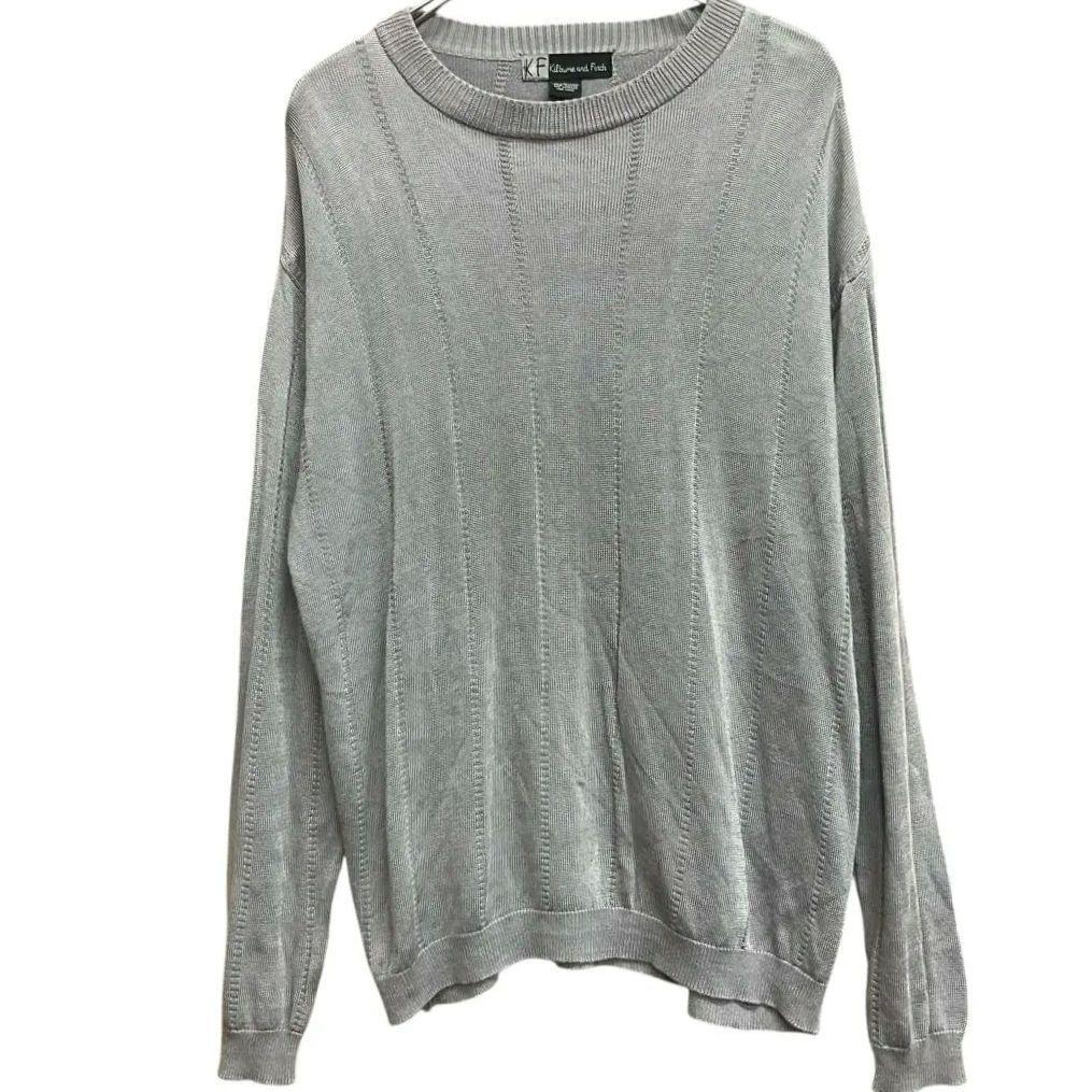 - レディースニット 薄手 灰色 無地 ストライプ XL 秋冬 やや光沢有【1257