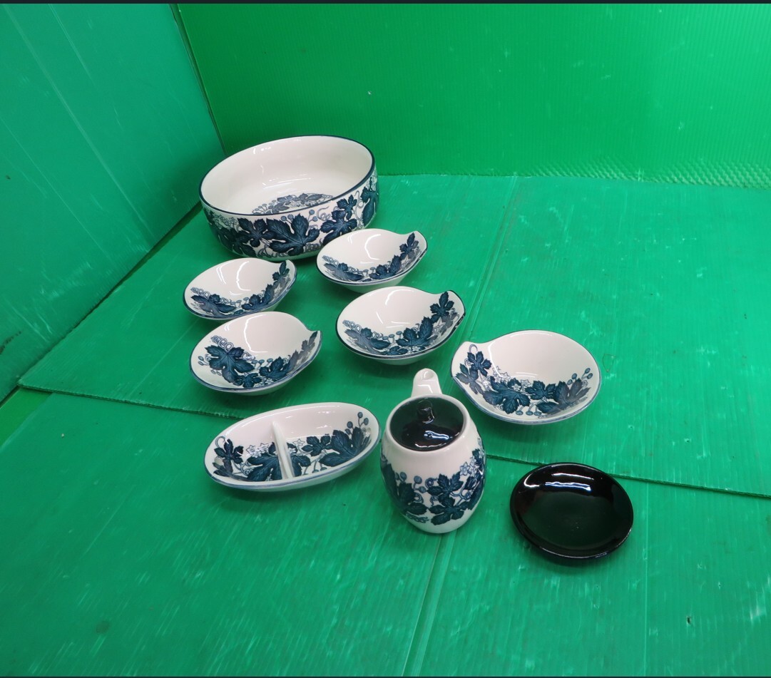 - W-611■長期保管品!大皿(器)×1/取り皿×5/薬味入れ×1/調味料小瓶×1+皿 セット 中古