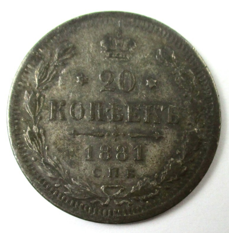 - M-898 ロシア 20コペイカ銀貨 コイン 1881