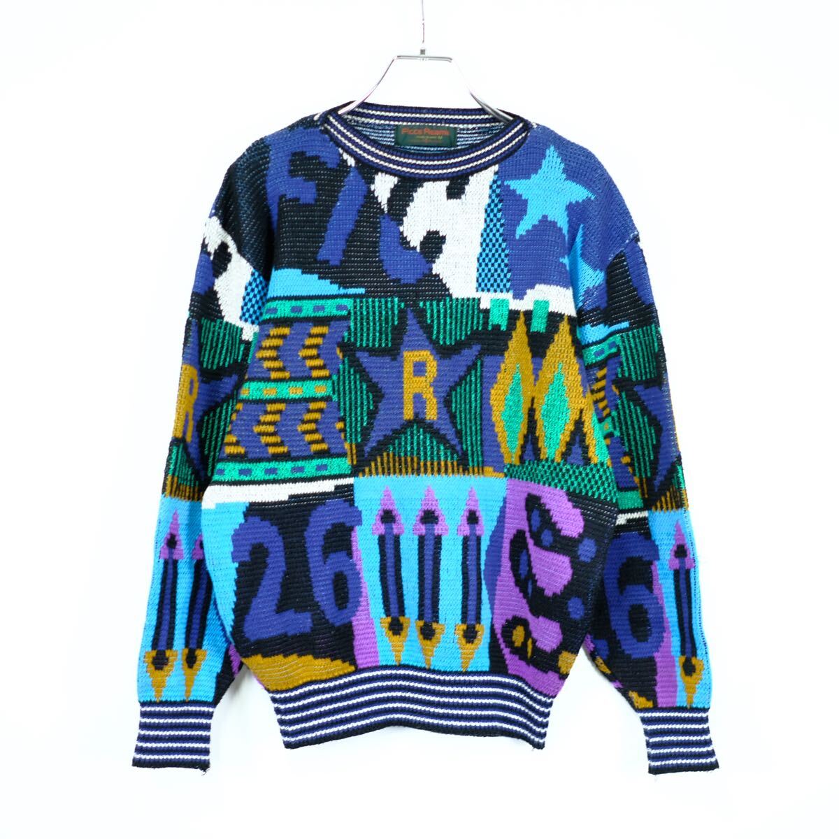 - 1980s FICCE ビンテージ 総柄ニットセーター 初期作品 古着屋 フィッチェ ビートたけし着 北野武 アート デザイン ドン小西