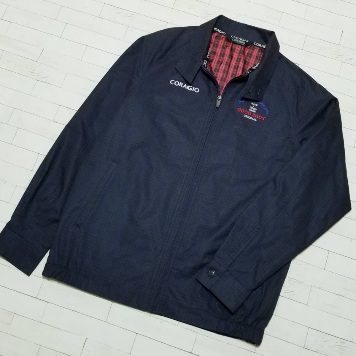 > 【美品】◎ CORAGGIO コラッジオ/ 長袖 ワンポイント刺繍ロゴ チェック柄 ゴルフジャケット 裏地メッシュ SIZE: M ネイビー