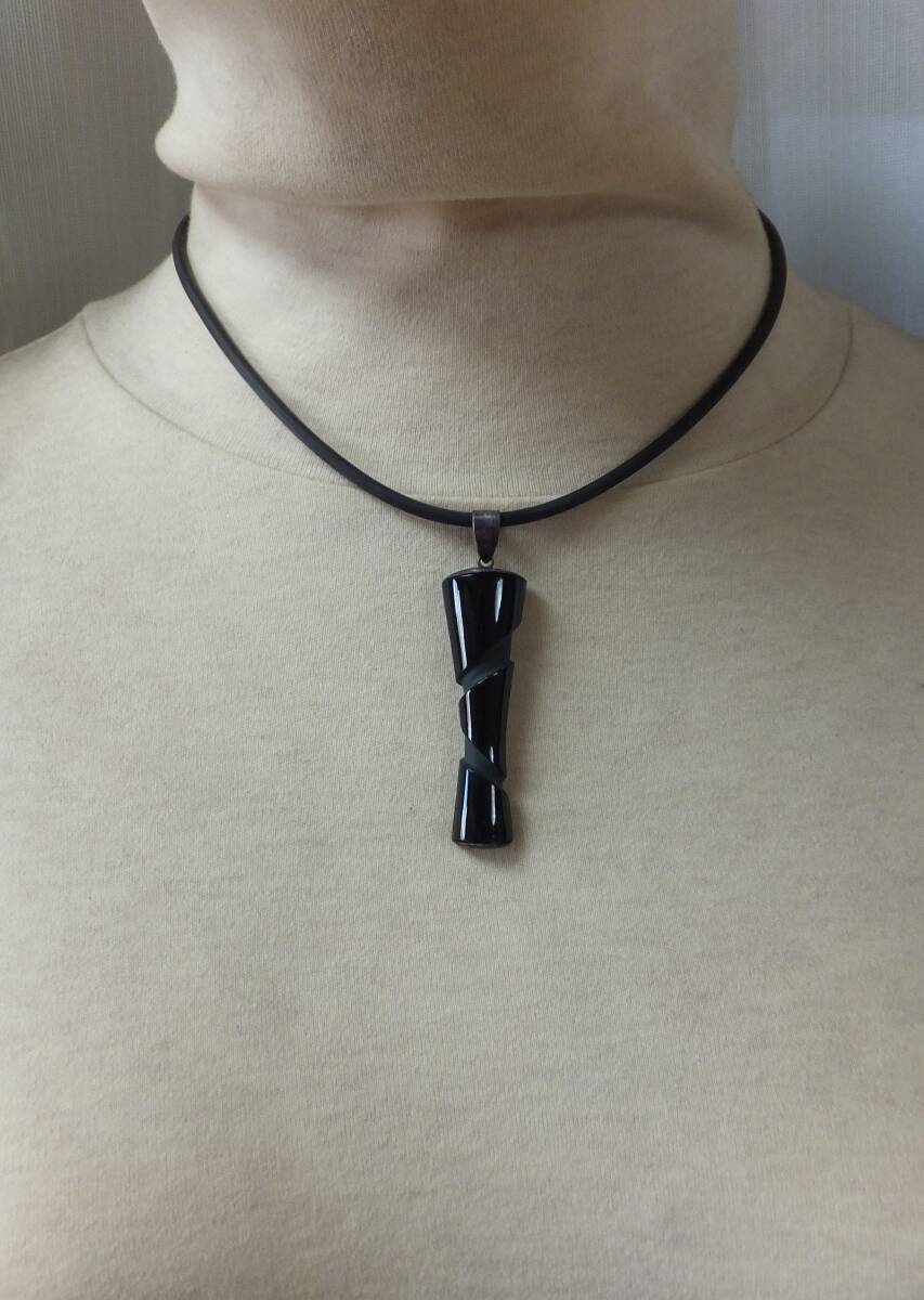 - シルバーアクセサリー 「オニキス」 ラバーネック約45cm No.65
