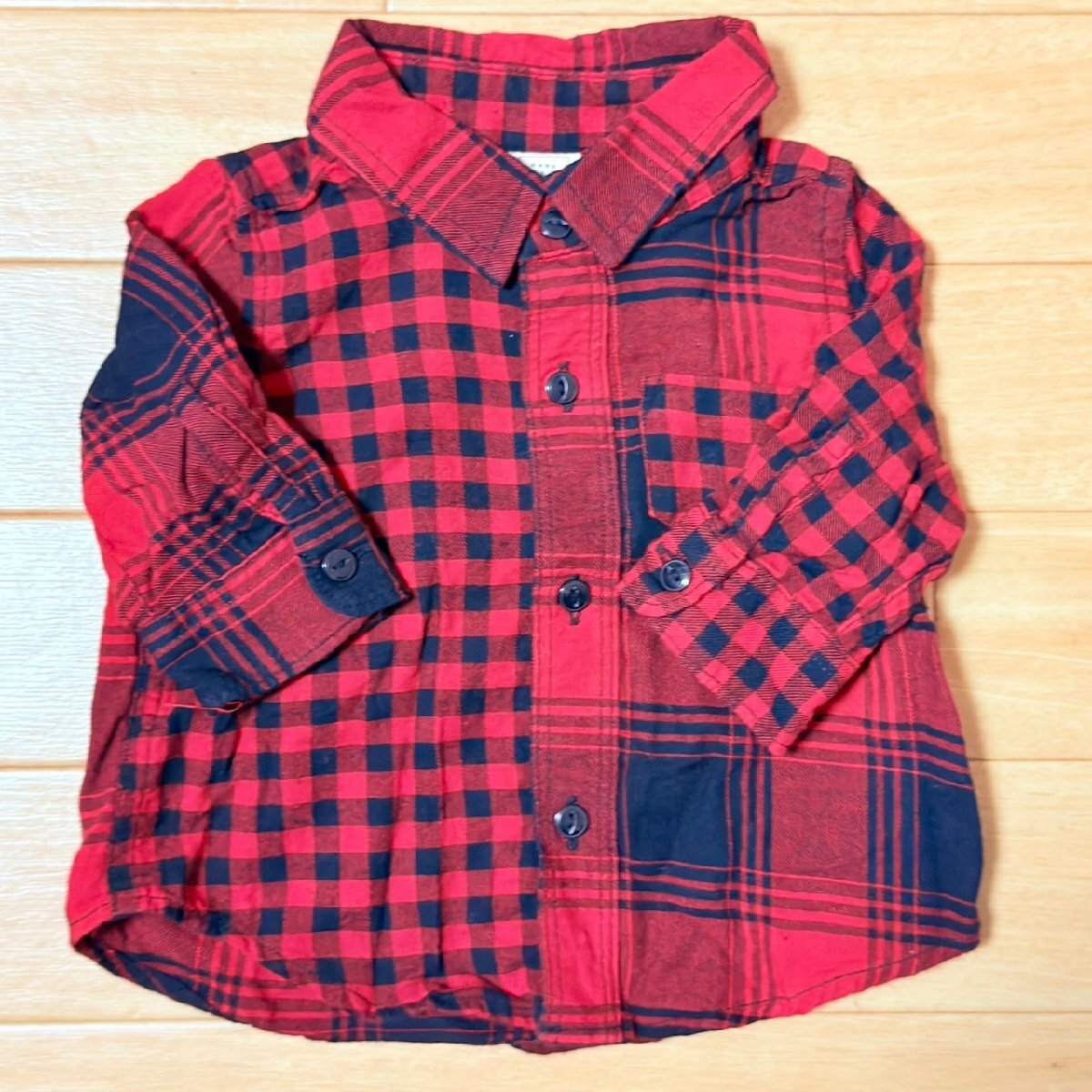 > baby Gap ベビー ギャップ フランネルシャツ 七分袖 レッド クレイジーパターン 50cm