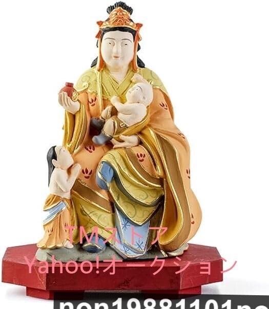 - 木彫りの仏像【鬼子母神】柘植 金泥仕様 安産成就 安産のお守り 恋愛運 良縁成就(高さ8.5cm×巾6.5cm×奥行5cm) (極彩色)