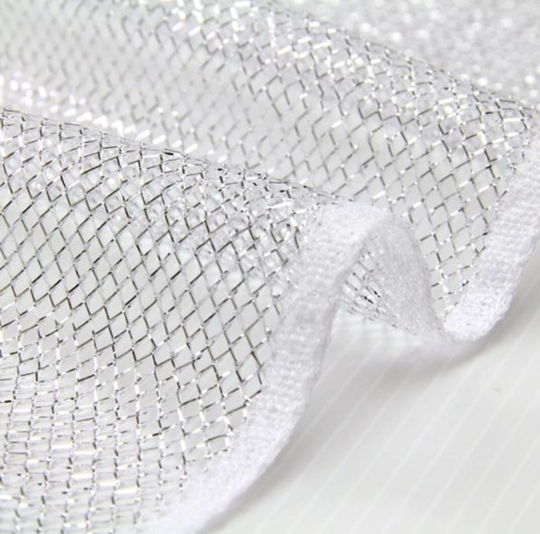 - 送料185円~ ラメネット シルバー×白 生地 布ハンドメイド品、ドレス、文化祭等に