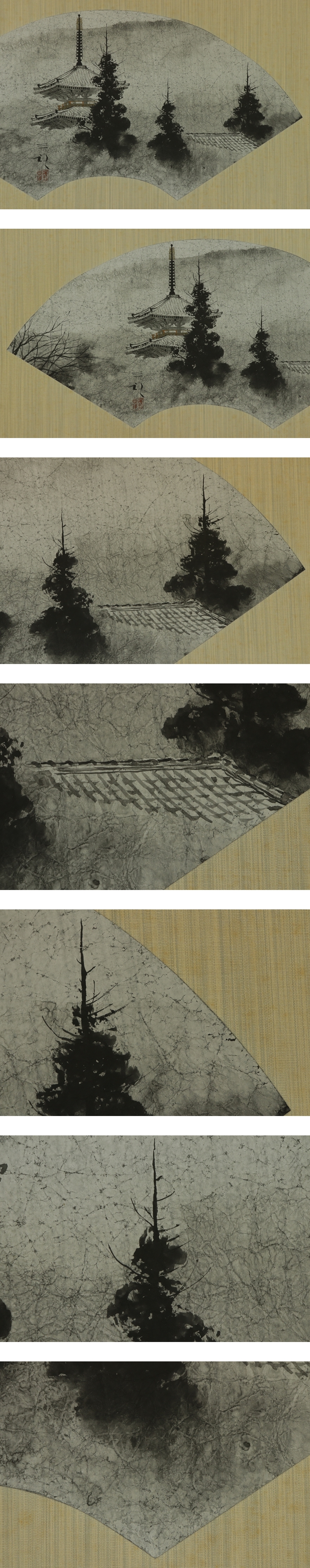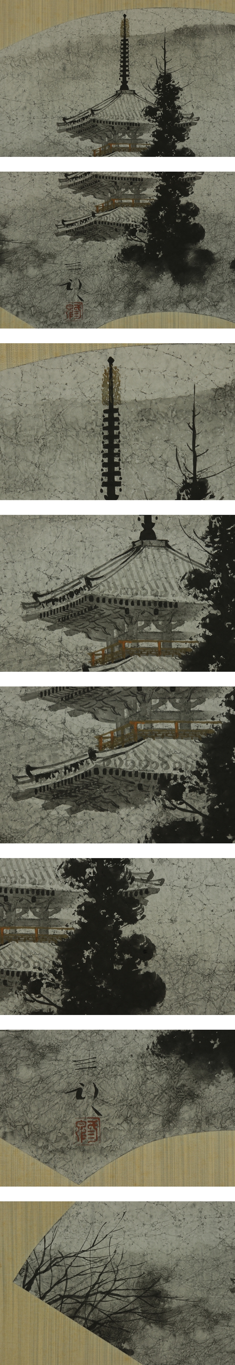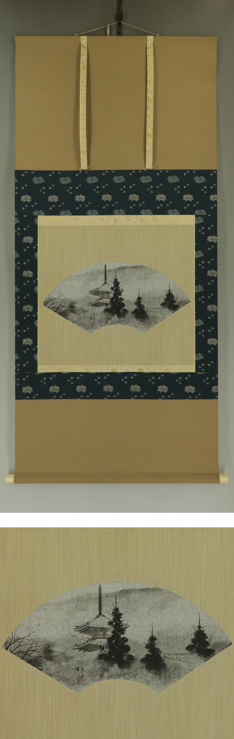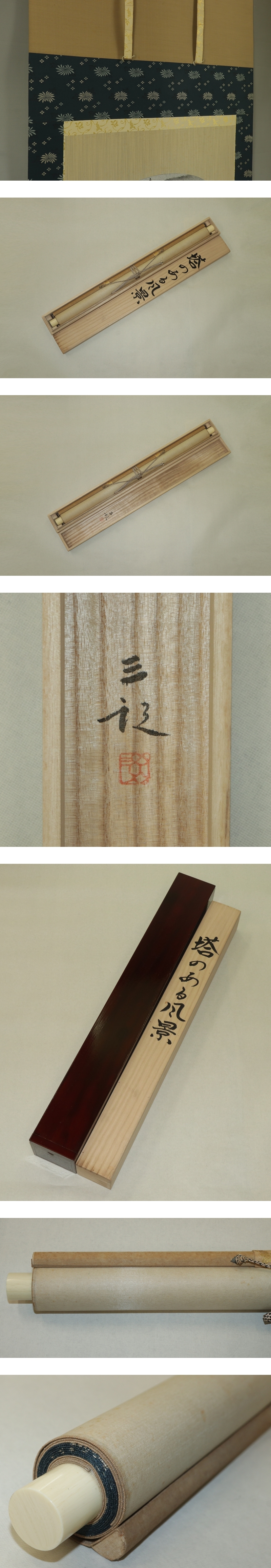 - 【模写】浜田三郎【塔のある風景】◆紙本◆共箱◆二重箱◆掛軸 s12024