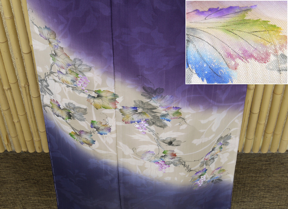 > 【京かんざし】140★本場縞大島紬 訪問着 葡萄唐草 証紙付き 京都きもの友禅 躾糸付未着用身丈167.5 cm裄丈68.5 cm袖丈54 cm★即決送料無料