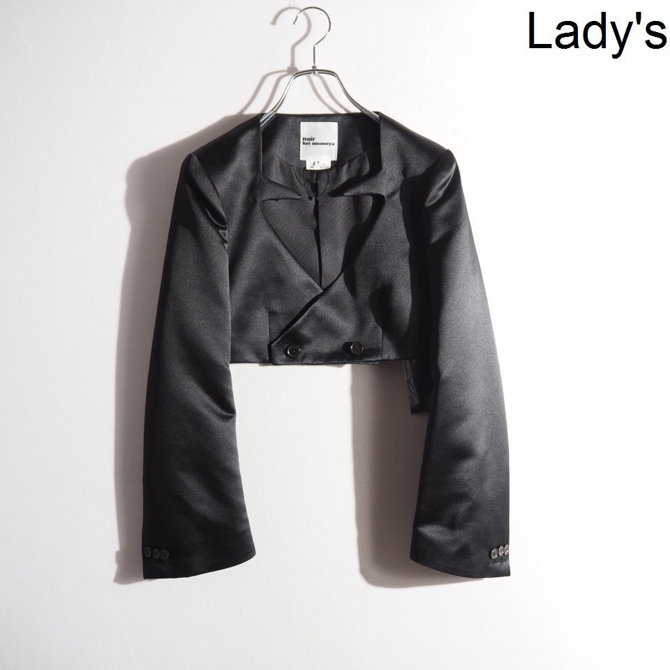 - P7070P ▼noir kei ninomiya ノワール ケイニノミヤ▼ 24SS サテン オープンノーカラー クロップドジャケット ブラック S 春~秋 rb mks