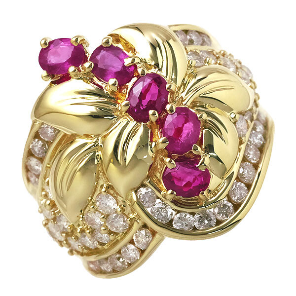- 送料無料 本物 ルビーダイヤモンドリング K18YG ルビー1.08ct ダイヤ1.02ct 13.5号 幅広デザイン 仕上げ済み レディース 高級
