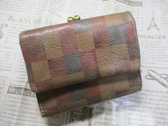- 訳アリ 新品 財布 三つ折り アインソフ レディース ブランド 本革 牛革 ブロックデザイン グレー