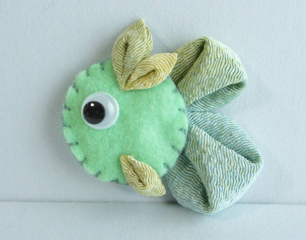 - ♪ ハンドメイド きんぎょ 金魚 ブローチ ちりめん つまみ細工 フェルト 動眼 綿入り