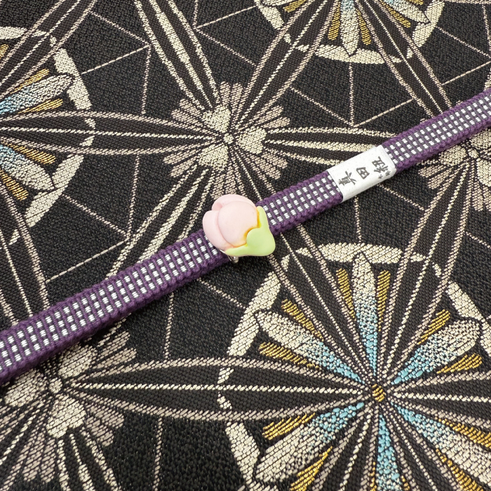 - 真田紐 帯留 2点セット 浴衣 着物 単衣 ゆかた 帯〆 帯締め 帯どめ 木綿 紫 ピンク 花