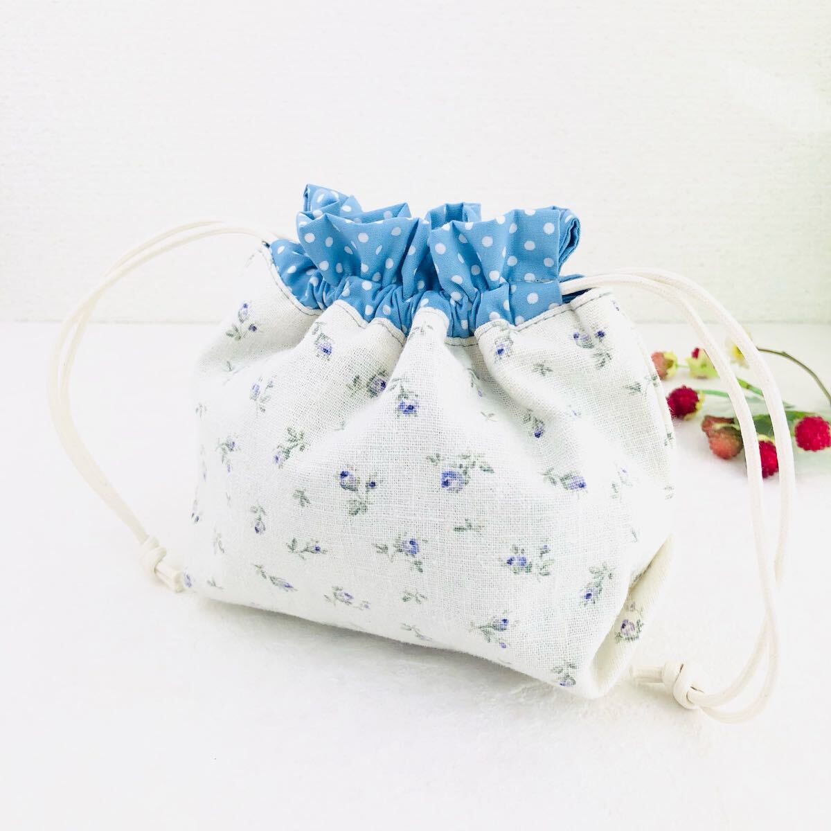 - プチローズ さんかくまちの巾着袋 ハンドメイド 巾着袋 薔薇 ローズ柄