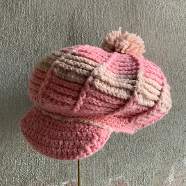 > 【Free】ハンドメイド ニット キャスケット 帽子 ピンク■ビンテージ オールド アメリカ古着 アクリル ニット帽 キャップ