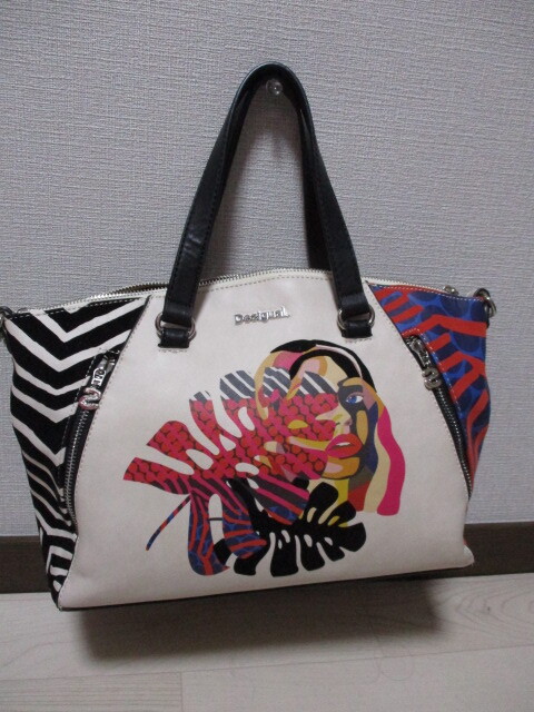 - Desigual デシグアル 白に女性イラスト柄★ショルダーバッグ