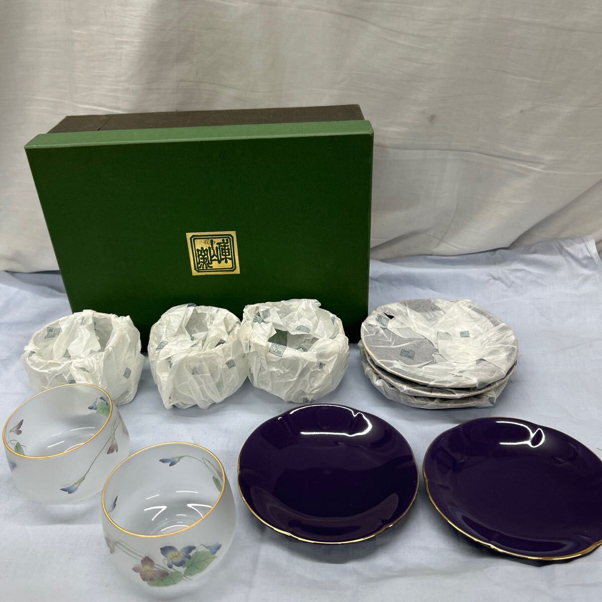- 78★70221-① 庫山窯 すみれ草 冷茶 冷茶碗揃 茶碗 食器 小皿 和食器 皿 セット