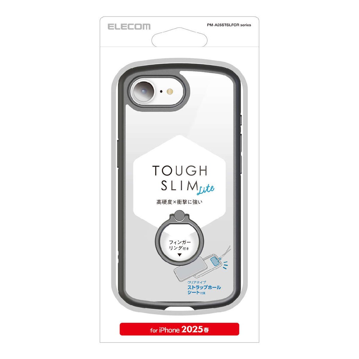 > iPhone16e用ハイブリッドケース [TOUGH SLIM LITE] 端末の落下を防止するリング付 フレームカラータイプ: PM-A25STSLFCRBK