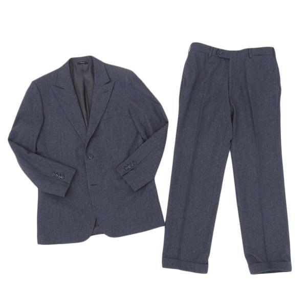 > HERMES エルメス ストライプ 2Bスーツ セットアップ メンズ ウール ダークグレー×ブルー 50 ヴィンテージ