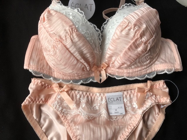 - C70 Mサイズ ブラジャー ショーツ 上下セット 白&薄紅色 レース リボン 刺繍 可愛い 上品 エレガント 豪華