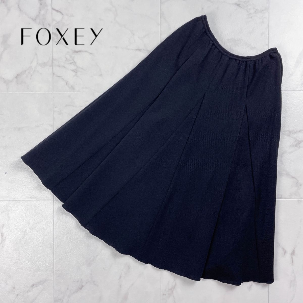 > 美品 FOXEY BOUTIQUE フォクシーブティック ウールフレアスカート チュールレイヤードスカート付 膝下丈 黒 ブラック サイズ40*YC97