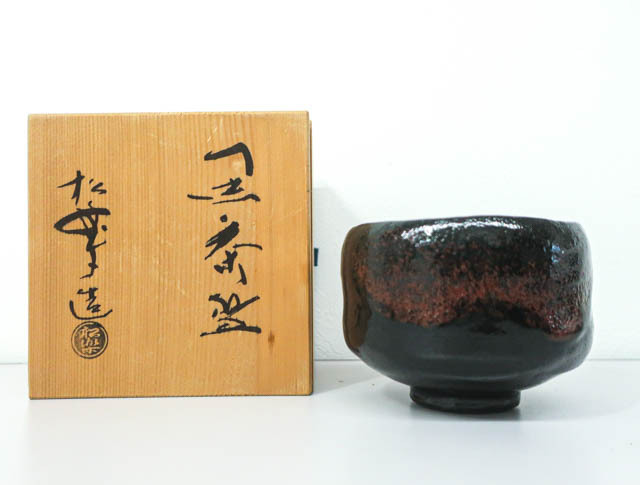 - 《古美術京松》【茶道具】 京焼 松楽造 黒茶碗 共箱入り R6D-14