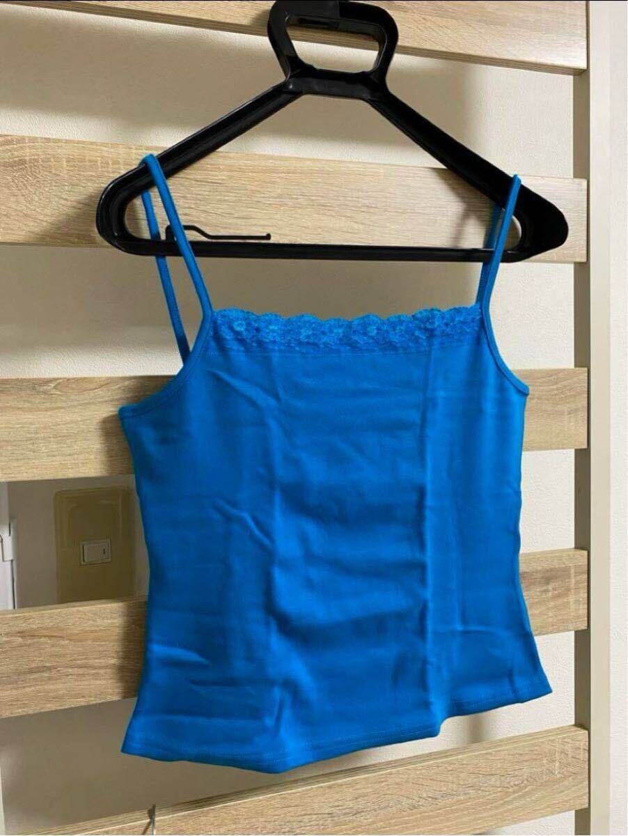 - 【送料無料】未使用 ブルー 胸元レースキャミソール 9R ③