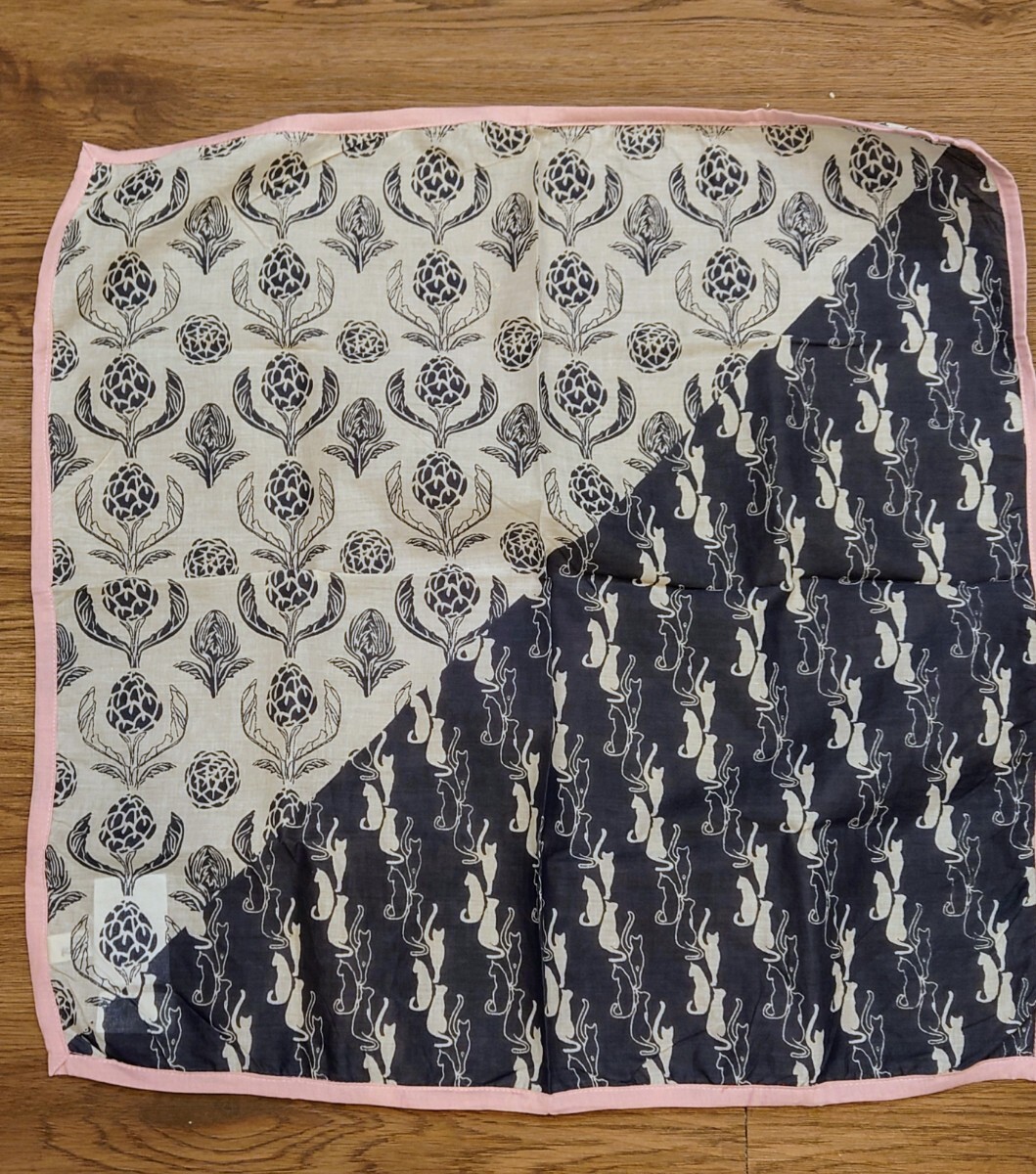 - 猫柄 猫雑貨 猫グッズ KILKI インド綿 ハンカチ キャッツアンドアーティチョーク ブラック 黒 ねこ キャット cat エスニック