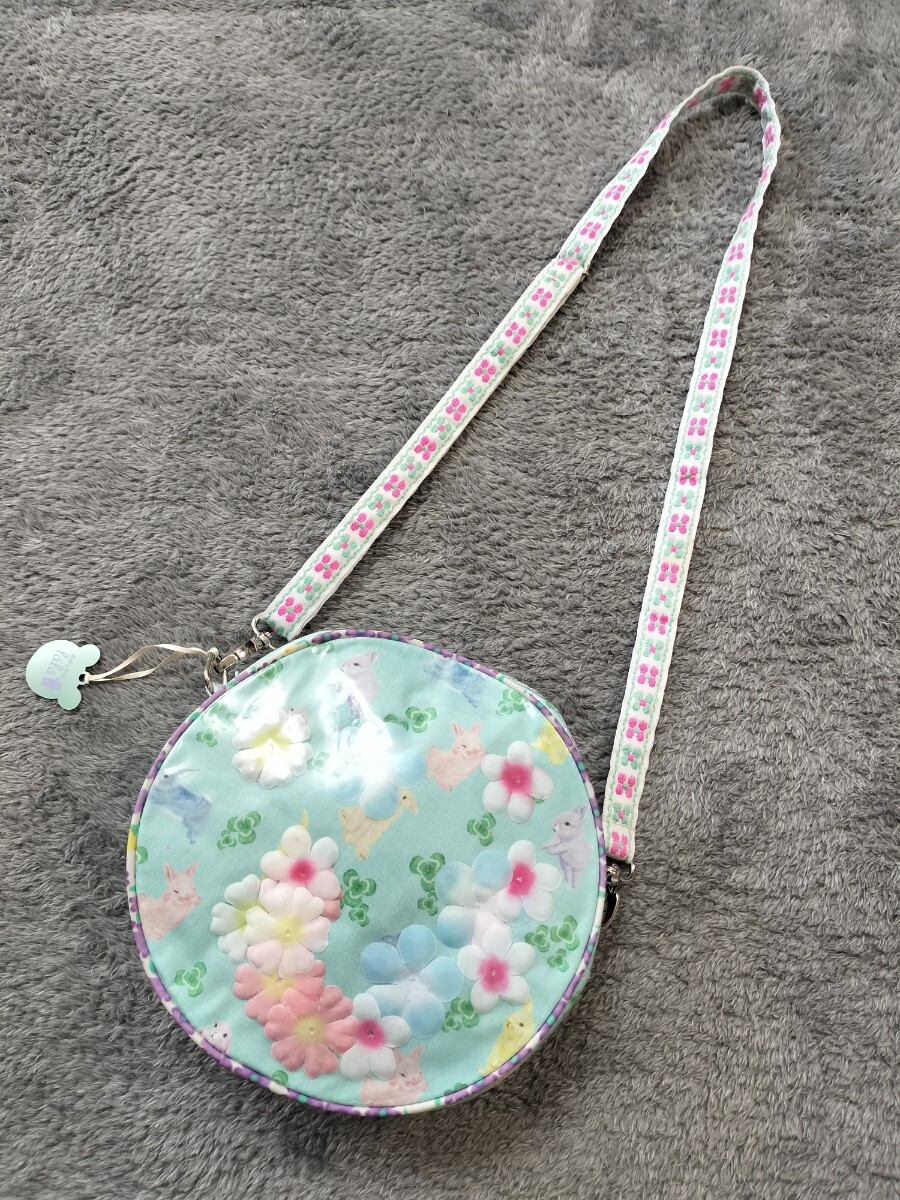 - 美品★fafa フェフェの ELERI | 丸型ポシェット ウサギに花柄 水色