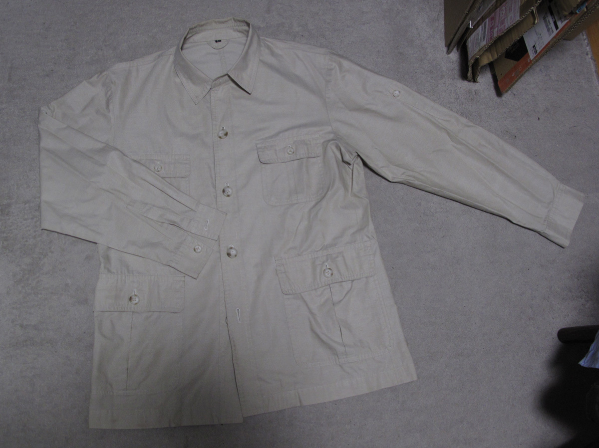 - 「WORLD EYE'S」 薄手の オーバーロールアップシャツ 薄茶色 中古 Lサイズ