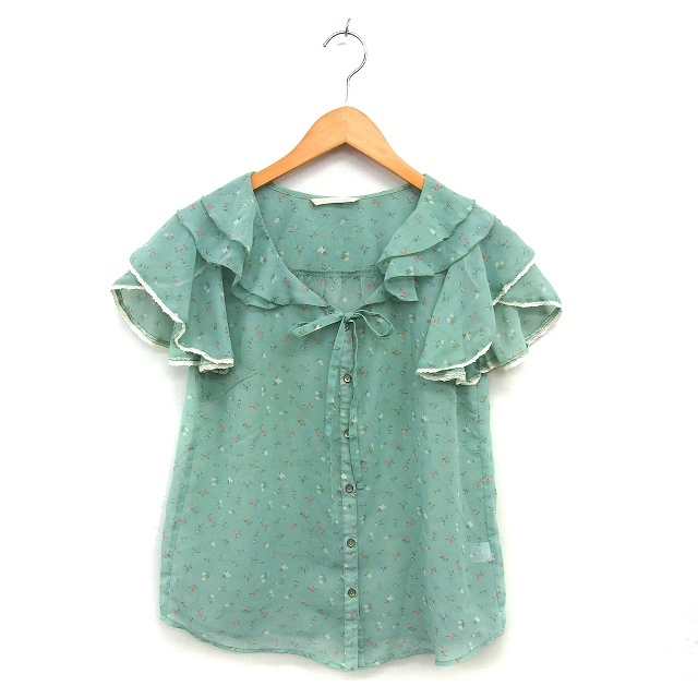 - オリーブデオリーブ OLIVE des OLIVE シアー ブラウス シャツ リボン 花柄 ラウンドカラー レース 半袖 ミントグリーン /NT17 レディース