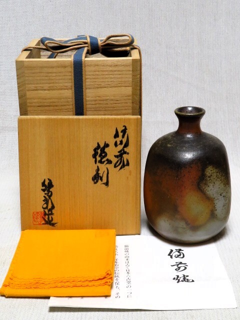 - 備前徳利 矢部篤郎 共箱 共布 栞 酒器 酒呑 備前焼